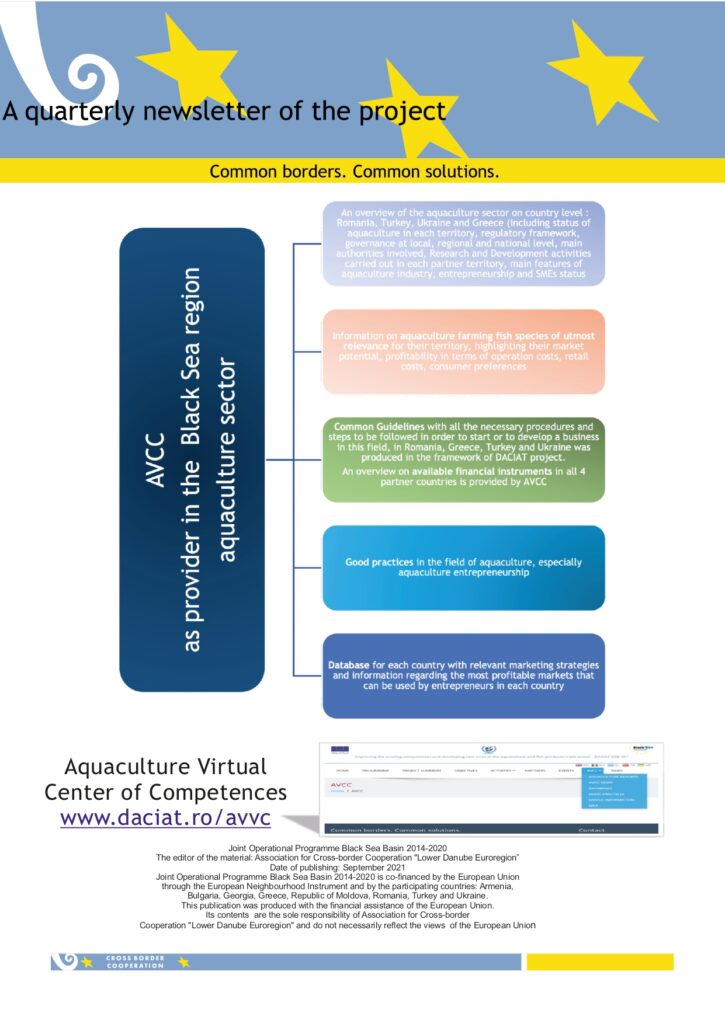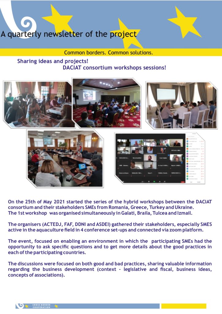 The main topics of the workshop included the presentation of the DACIAT project (objectives, activities and results achieved) as well as the status of the aquaculture sector in Romania and Greece and the Virtual Center of Competences in Aquaculture (AVCC) developed by the project consortium. The open-access platform provides aquaculture SMEs/entrepreneurs and all those interested in developing an aquaculture business, useful information, templates, useful links to various institutions’ website, news and periodical newsletters, as well as good practices examples from DACIAT partners countries.